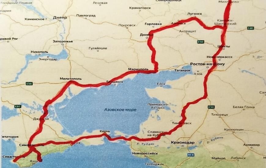 В ходе патриотического марафона его участники посетили города Республики Крым - Керчь, Алушта, Симферополь, Севастополь и города Донбасса - Мелитополь, Мариуполь, Донецк, Луганск и пос. Рамонь Воронежской области.